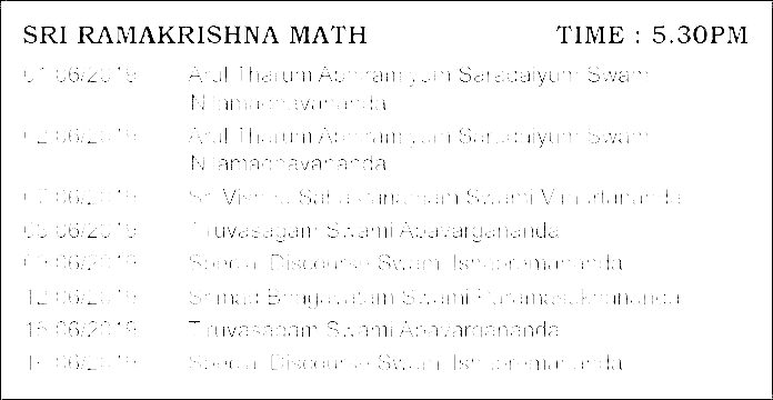 RAMAKRISHNA MATH MONTHLY PROGRAMME